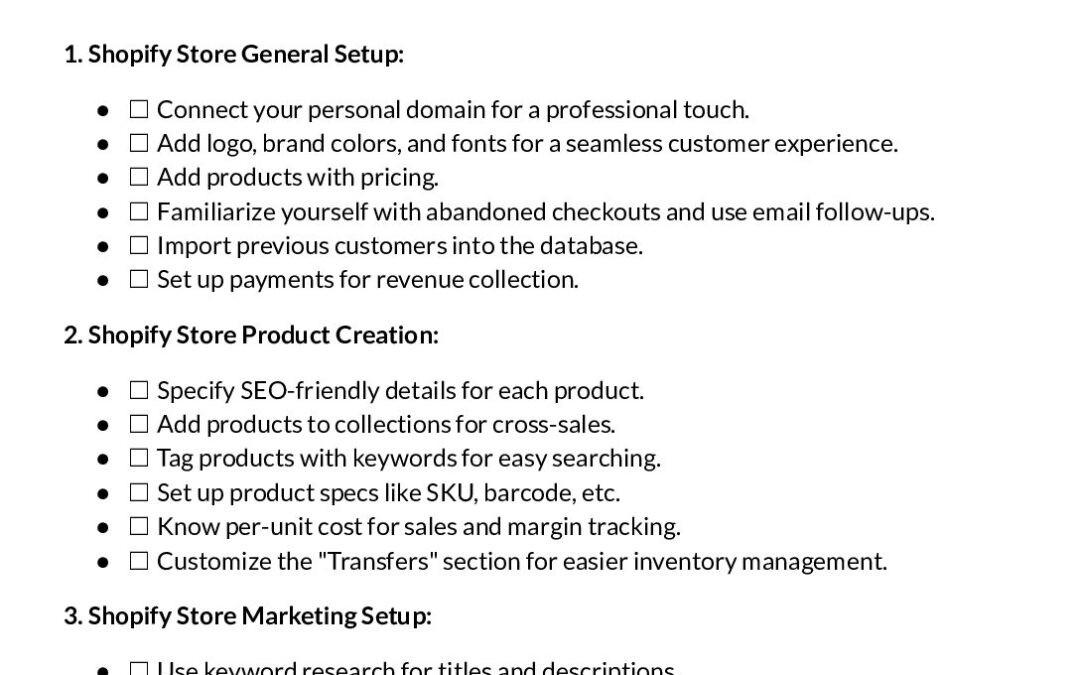 Shopify Checklist